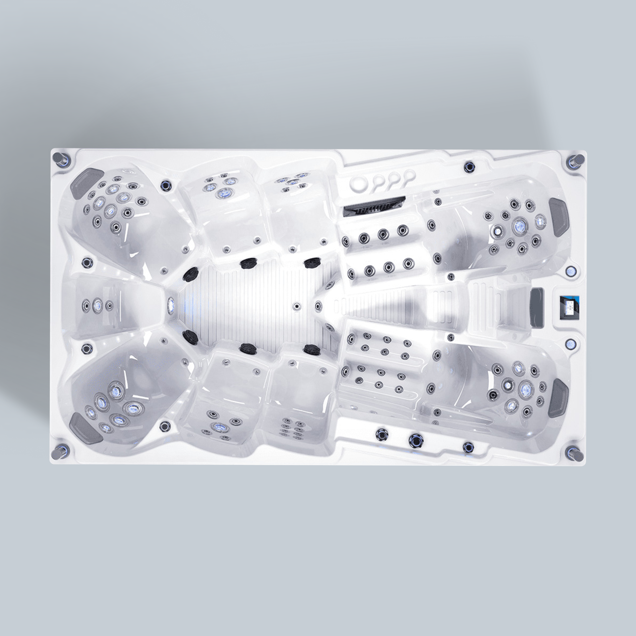 Lorsqu’on recherche un spa de plus de six places, il faut accorder une attention particulière à l’ergonomie offrerte par l’équipement. Nous en sommes parfaitement conscients. Par conséquent, nos jacuzzis sont équipés à la fois de places assises et allongées très confortables, qui offrent des appuis stratégiques pour vous aider à vous détendre. Vous vous en rendrez compte par vous-même.